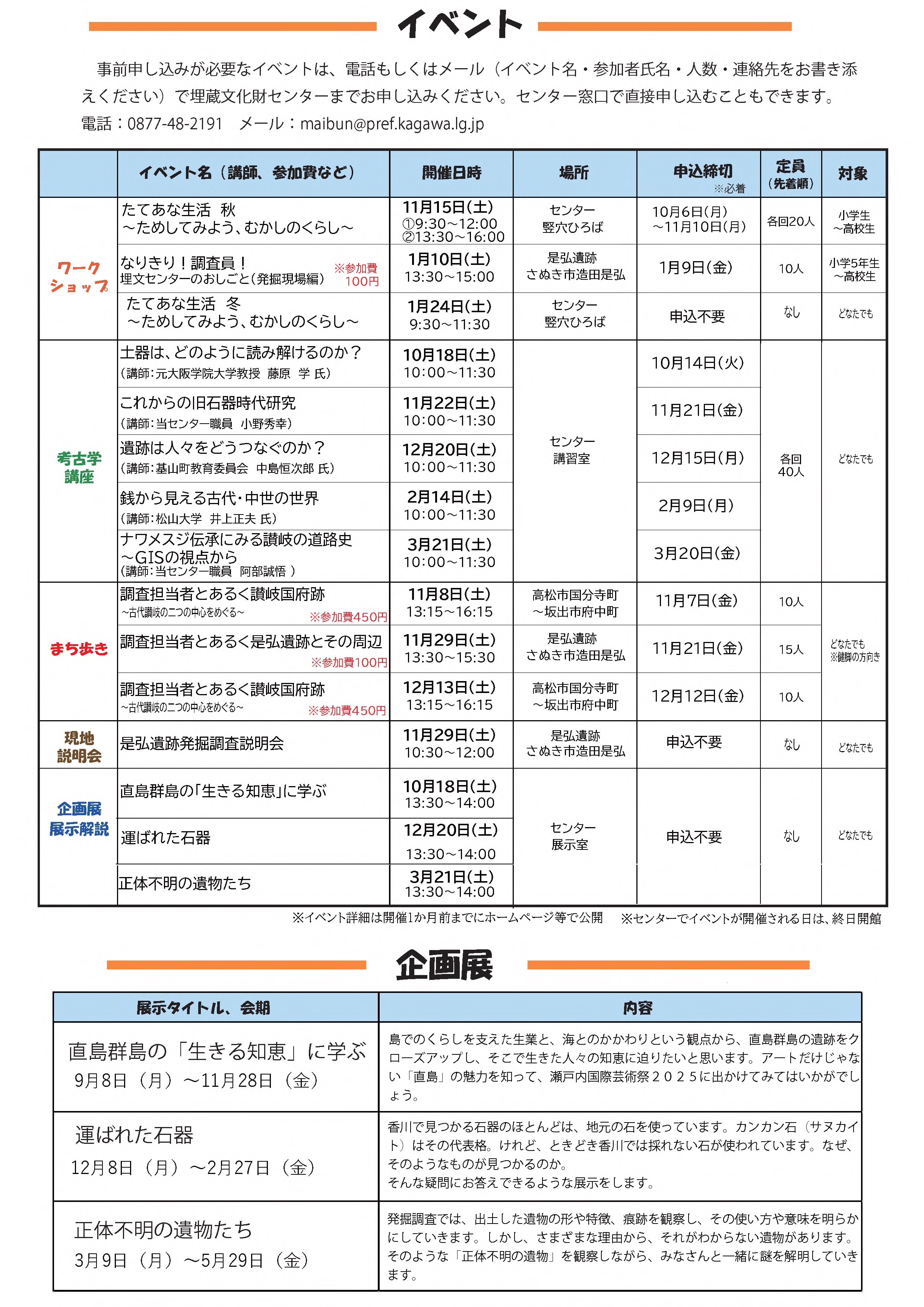 1概要 香川県埋蔵文化財センターで下半期に開催を予定しているイベントの情報一覧