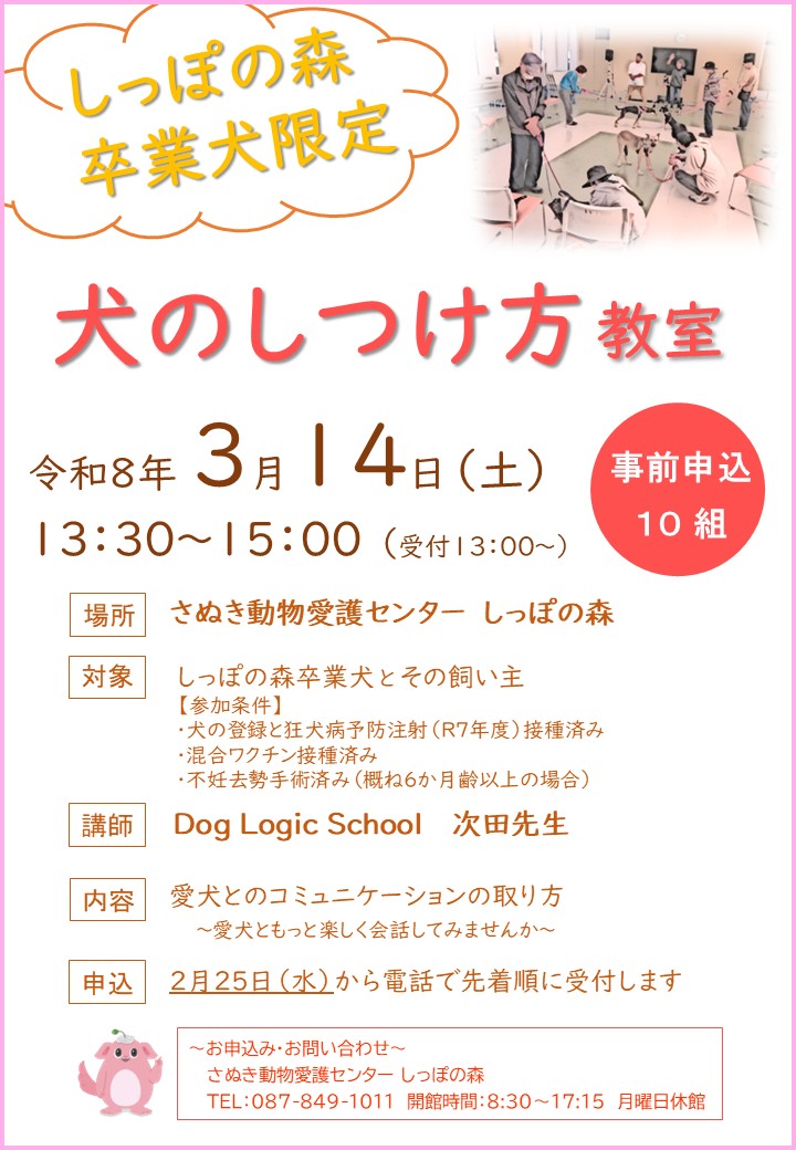 ■犬のしつけ方教室(令和8年3月14日(土曜日)13時30分~15時)