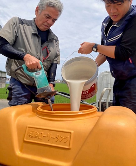〇令和7年6月6日にQヒート15kg(13.5L)×3缶=45kg(40.5L)を水に溶き250?作成した。