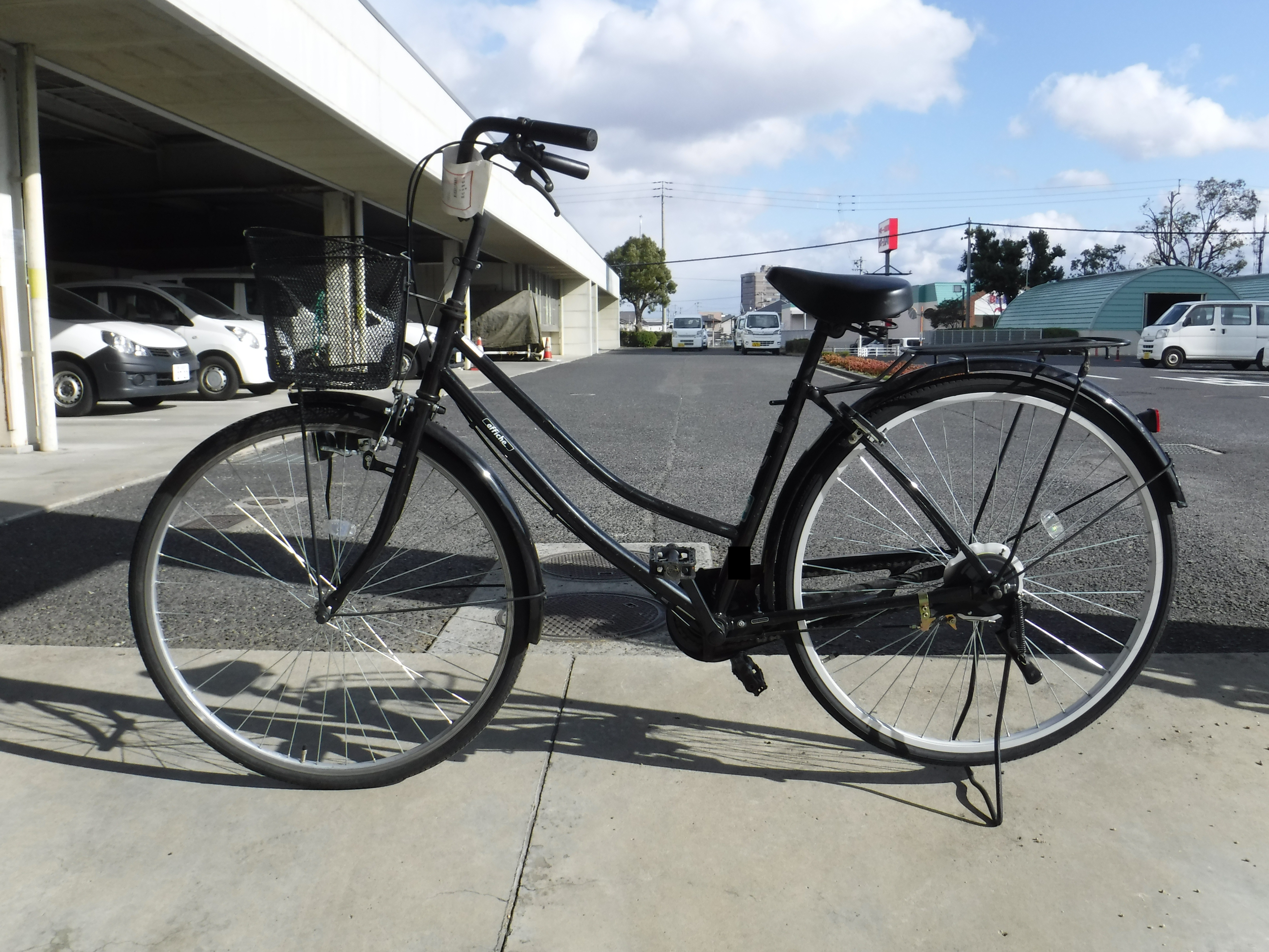 黒のシティサイクル、27インチ、防犯登録あり、車体にafficheのロゴあり