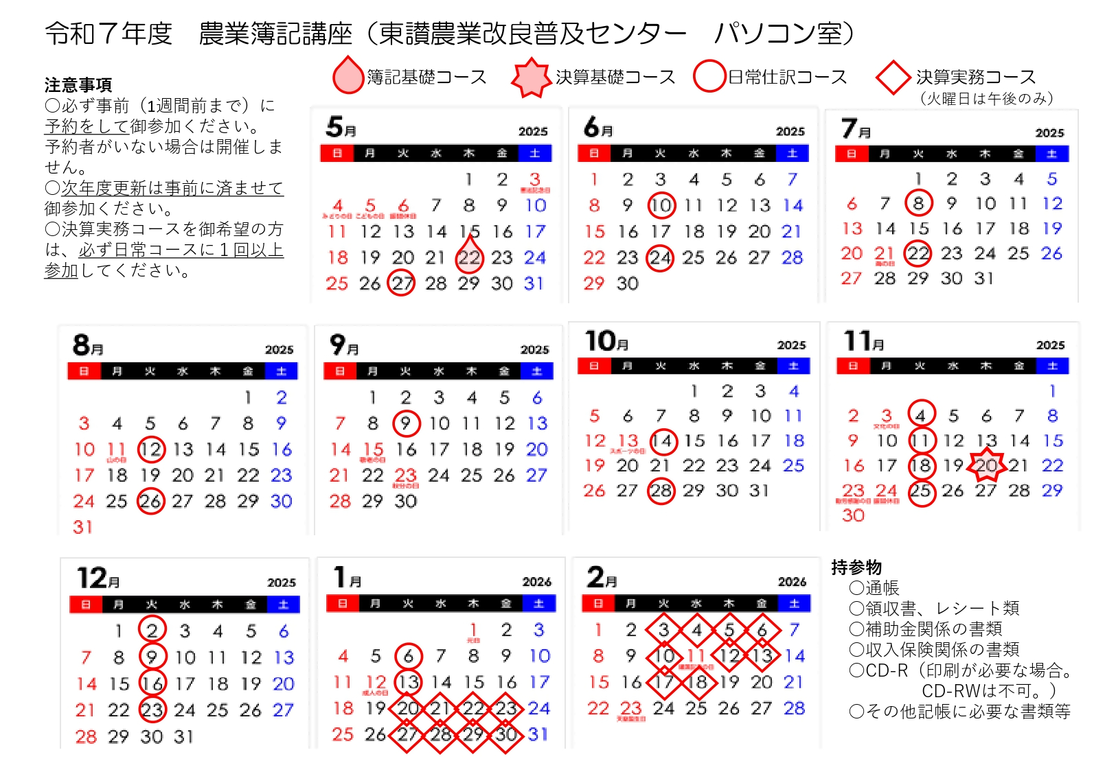 各コースの日程は、添付資料をご参照ください。